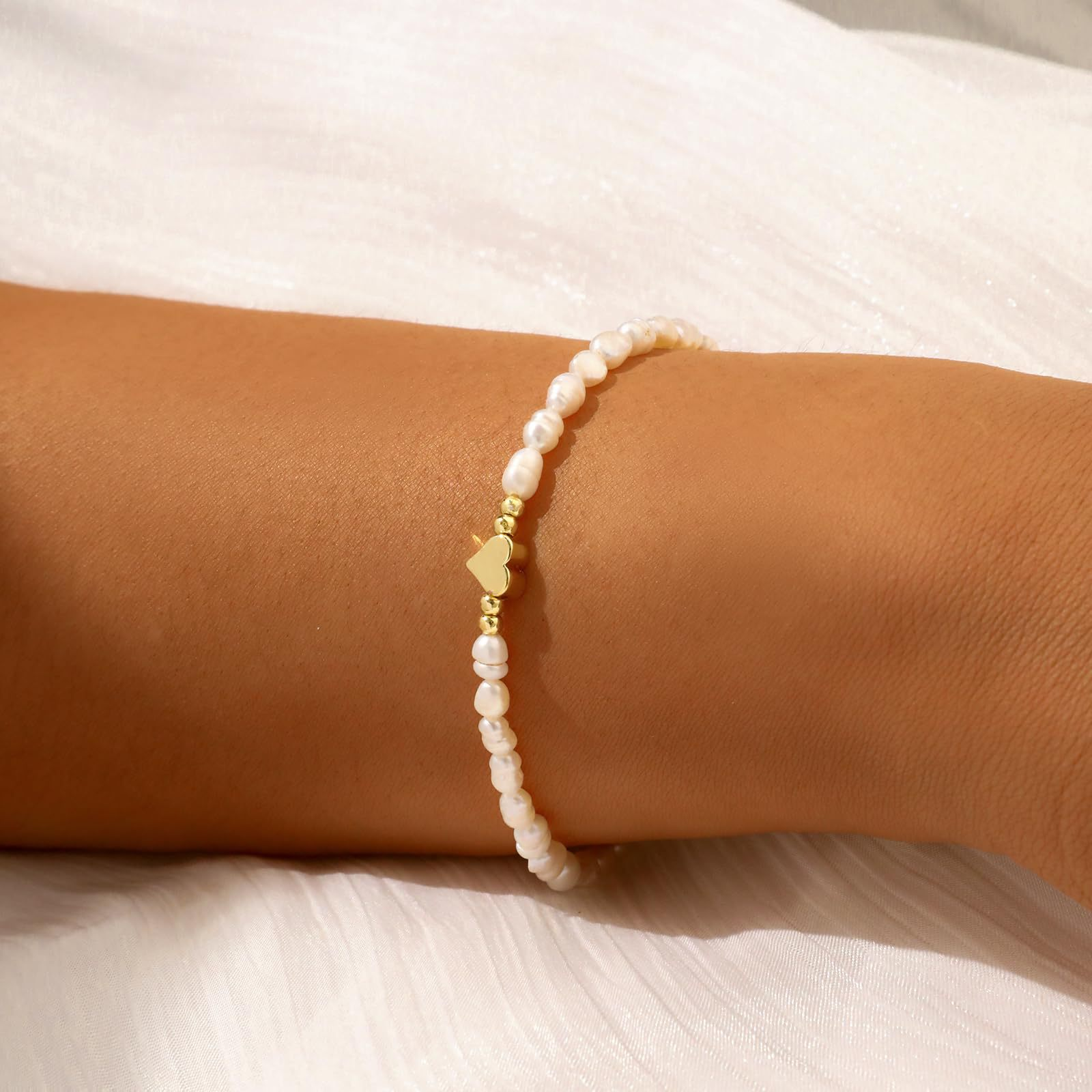Add a touch of elegance to your style with this Heart Pearl Chain Bracelet. Crafted with imitation pearls and available in gold and silver tones, this bracelet offers a timeless design that complements any outfit. Its minimalist charm makes it perfect for both casual and formal occasions, adding a subtle yet sophisticated flair to your look.